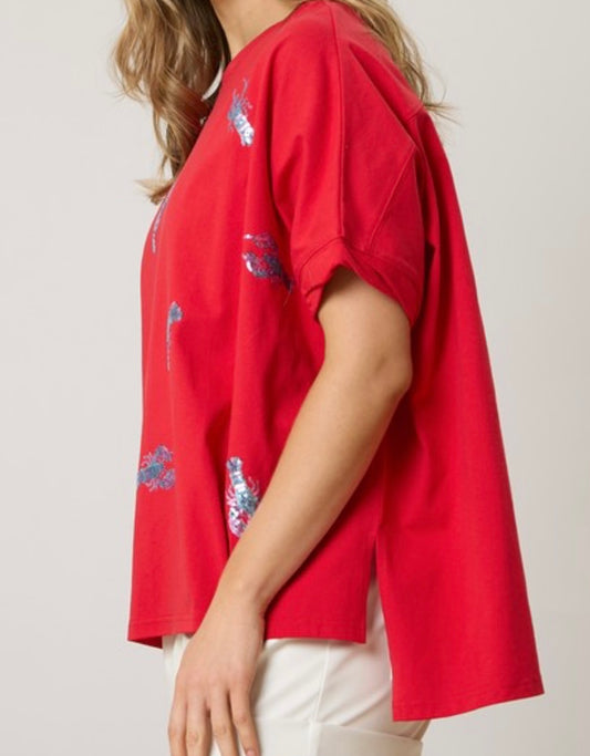 Crawfish Sequin Flowy Tee