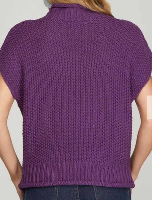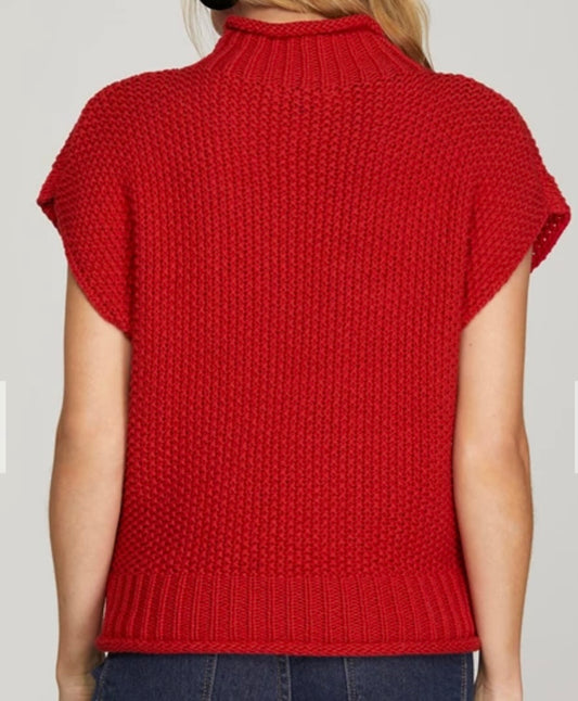 Drop Shoulder Sleeveless Mock Neck Sweater