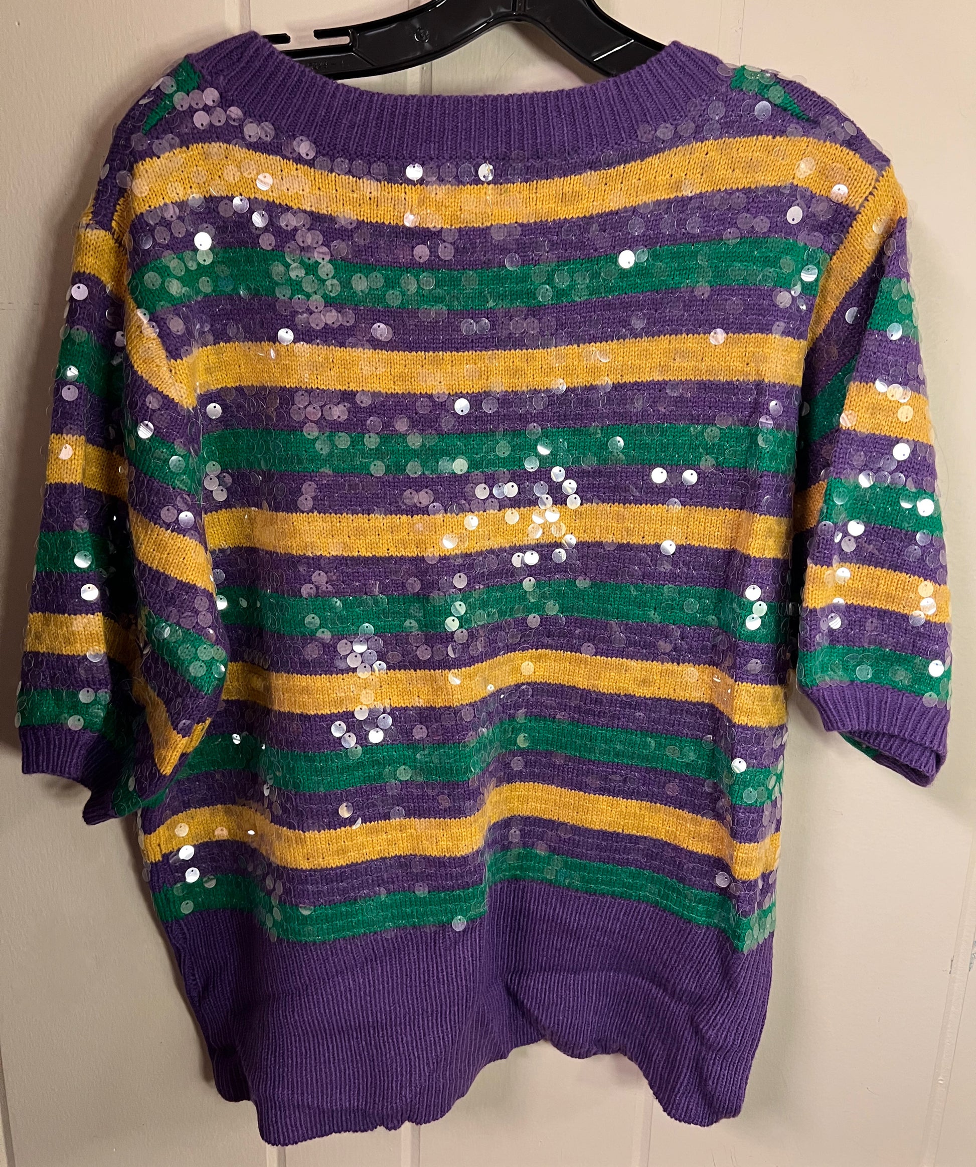 Mardi Gras Clear Sequin Short Sleeve Sweater